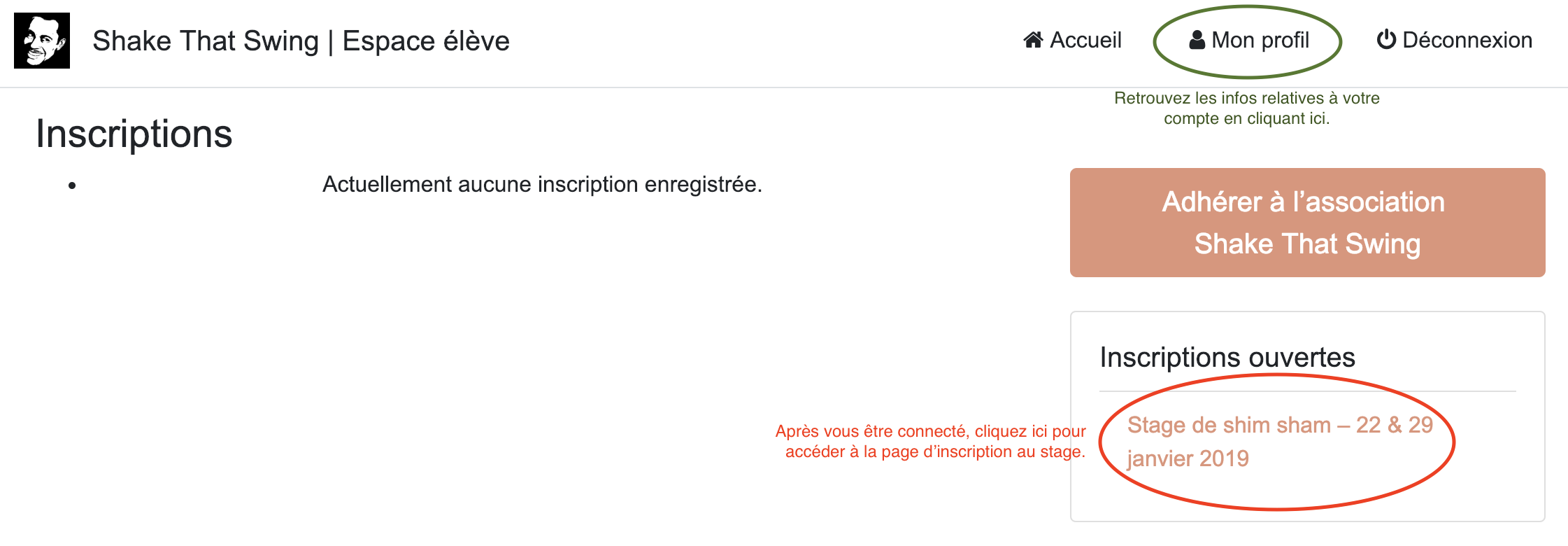 Attention, nous sommes très heureux de vous présenter notre nouveau système d’inscription pour ce stage. Il vous faudra suivre ces étapes :